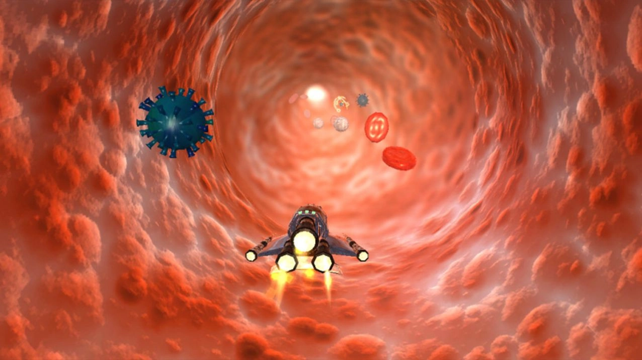 在量子的世界里开启一场永无止境的飞行,记得要避开水晶、超立方体、金字塔、电路以及血细胞的碰撞。