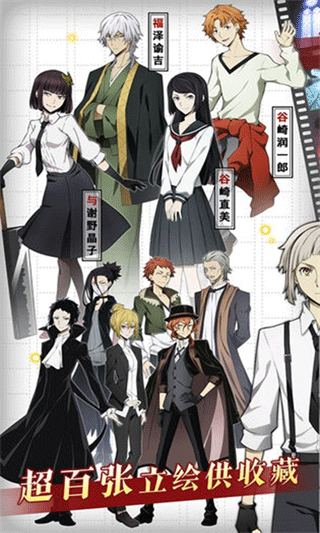 拥有文豪之名的游戏角色纷纷汇聚。这里面,有被称作横滨F4的中岛敦、太宰治、芥川龙之介、中原中也;有两大组织的首领福泽谕吉、森鸥外;更有泉镜花、江户川乱步、织田作之助、坂口安吾、费奥多尔等一众高人气角色。而你,有机会将他们召集起来,让其成为你队伍中的一员。