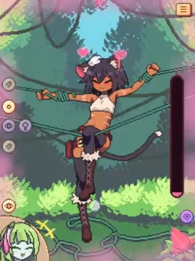 1、逃不掉了库拉拉酱采用像素风格画面,将可爱的角色与略带羞羞的紧张剧情结合在一起。