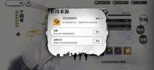 升级小贴士“轻点图案皆可知道获得来源噢”