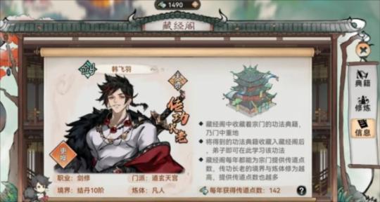 当玩家建立藏经阁后,每1道年(现实时间24分钟)会自动获得1次传道点数。