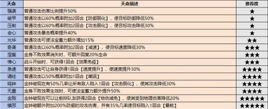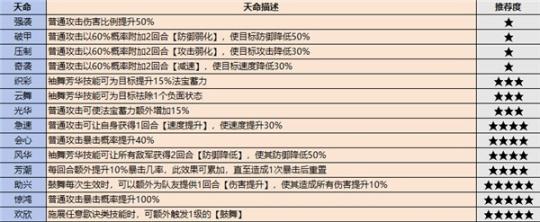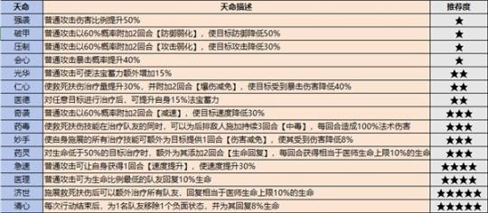 只有绝伦以上的高品质弟子才会自带天命,天命技能也有优劣之分,这里整理了一下各职业的天命排行,大家可以参考一下。值得注意的是,紫色弟子也可以通过服用九转金丹获得天命效果。