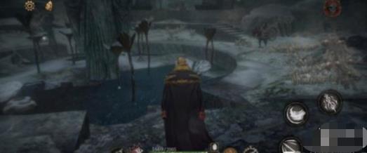 进村会看到只狗,狗右边有个水潭,水潭里火堆后面。