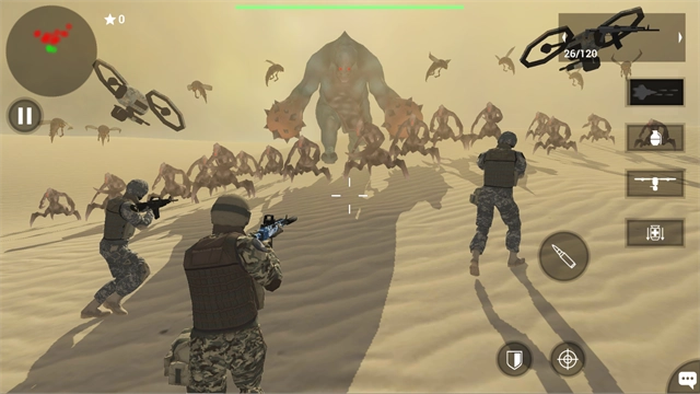 游戏里运用了多种现代战争武器。在打怪过程中,能够借助防护盾和飞行器来辅助攻击。