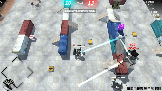 进入游戏后,玩家可借助左侧的虚拟轮盘来操控坦克的移动。