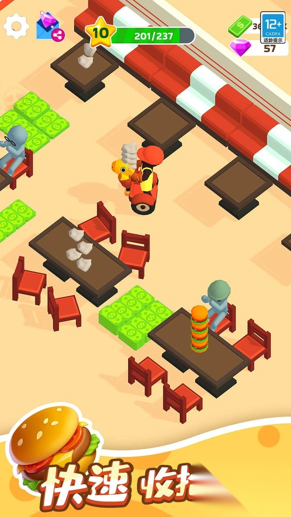 1、游戏从最基础的环节开始,让玩家逐步了解和掌握经营一家汉堡店的各个方面;