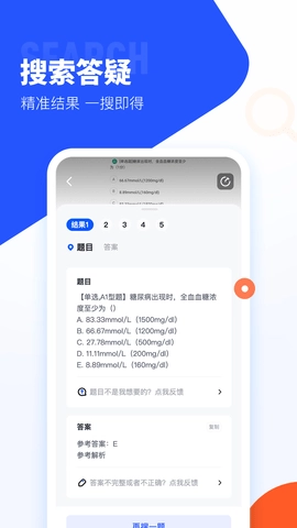 支持图片搜索、文字搜索、扫码搜索、书籍搜索等多元化搜索方式,只需一拍一扫,即可在秒内获得精准问答。