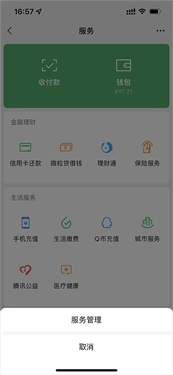 使用微信支付的用户,打开手机上的微信应用,进入后切换到“我”的页面,再点击“服务”选项。
