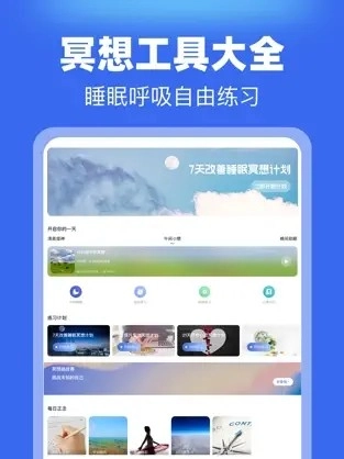 针对睡眠质量欠佳的问题,可借助冥想引导、呼吸训练、睡眠音乐等个性化方案及练习工具,来改善失眠状况,提升睡眠质量。