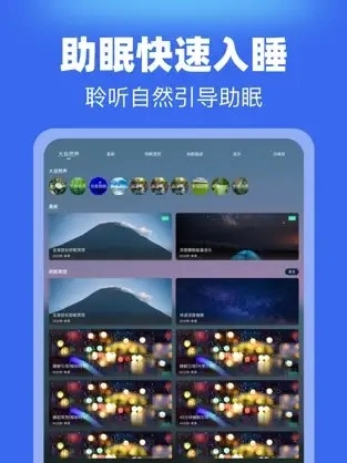 睡眠辅助工具:每日冥想类的专业睡眠工具,能让您在体验睡眠引导、聆听大自然音效与白噪音的同时,还可通过轻唤醒音乐实现柔和的唤醒过渡。