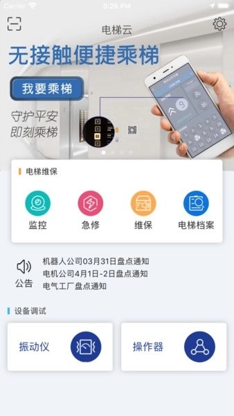 打开新时达电梯云,扫描电梯厅外二维码。
