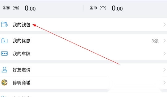 打开共享停车,点击“我的”,点击“我的钱包”