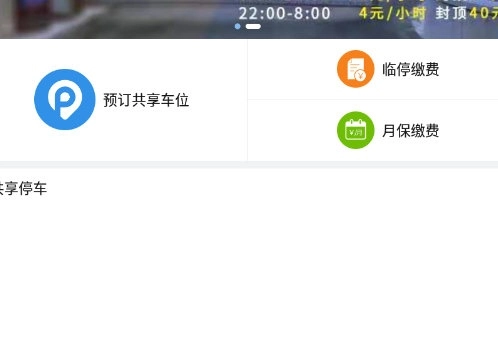 打开共享停车,进入首页,点击“月保缴费”