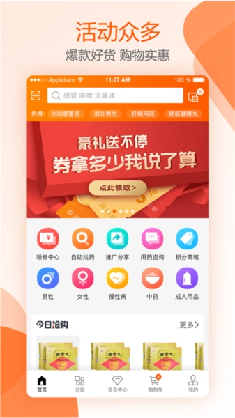 用户体验优化:软件界面友好,购物送积分,购药过程方便