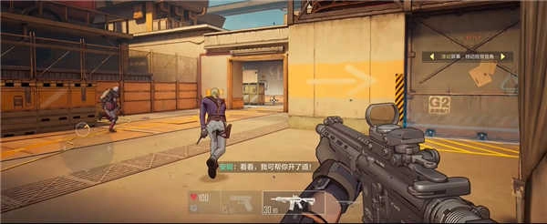打开《王牌战士2》,进入游戏后会出现新手教程,该游戏采用横版第一人称视角,通过点击左侧轮盘实现移动,滑动屏幕则可转动视角。
