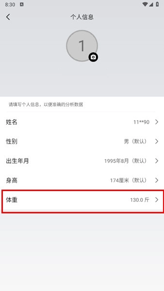 然后在个人信息中设置你的体重。