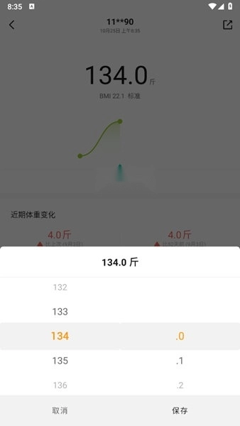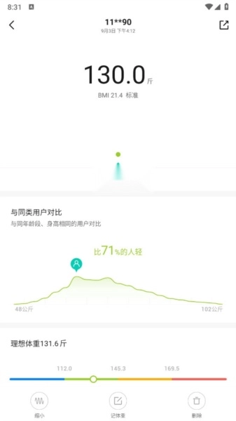 当然了点击体重也可以查看详细对比数据。