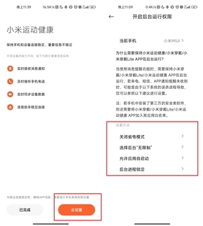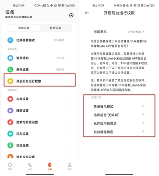 配对后,可在App的“设备”板块中找到“开启后台运行权限”页面,按照页面提示完成相关设置。