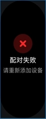 当进行绑定操作时,若手机处于关机状态或重启过程中,手环会显示“配对失败”的提示界面,此时需要等手机开机后再次尝试绑定。