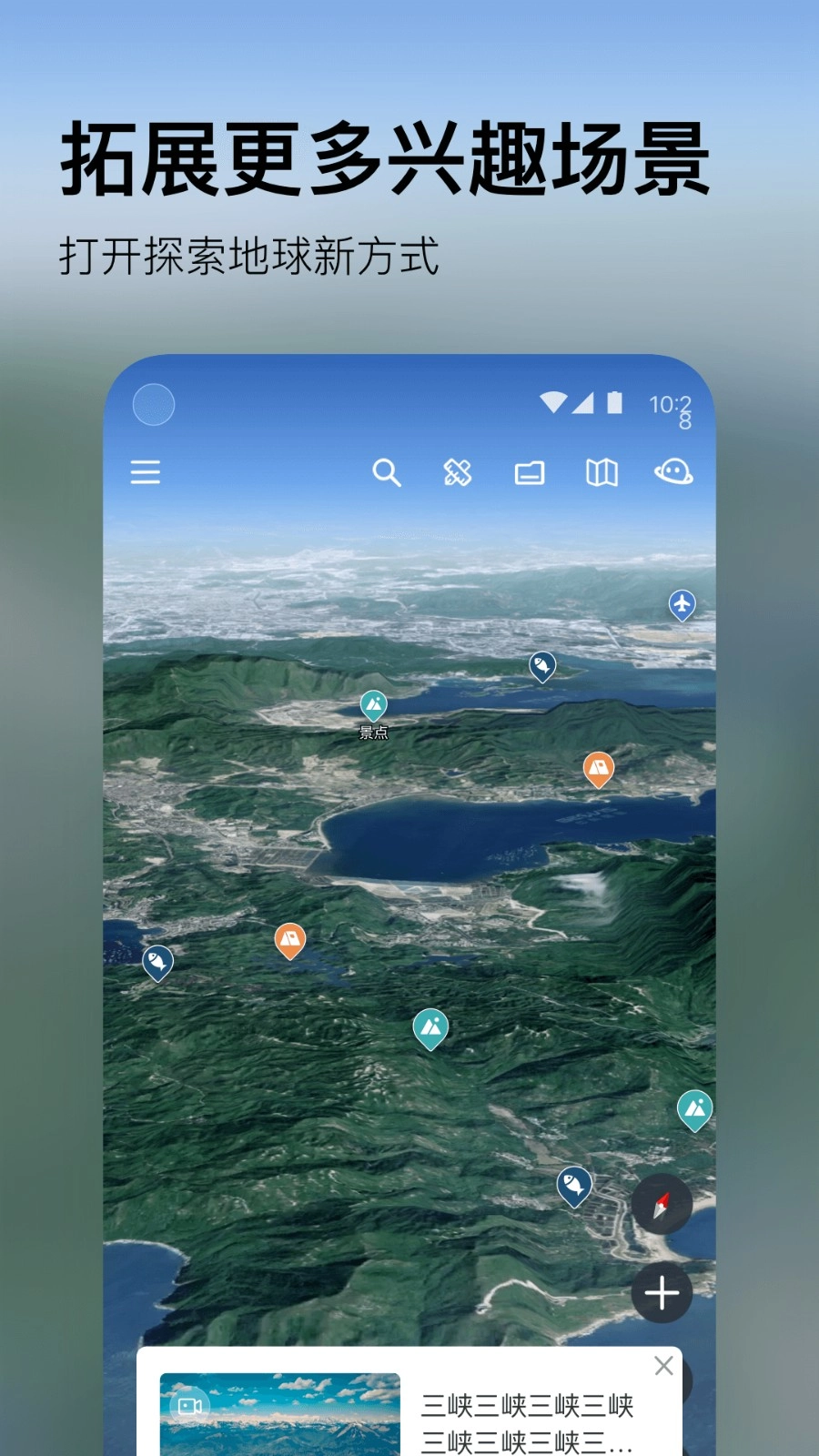 搜索功能支持输入地名、兴趣点、探索目标等进行智能检索,轻点搜索即可开启全球畅游之旅,让探索地球变得更加简单。