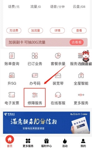 安徽电信可实时查询话费余额、账单详情、流量使用情况、已订购业务、积分详情、通话清单、上网清单,还提供障碍百科、宽带报障及障碍进度跟踪服务。
