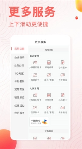 快速安全:便捷充流量、交话费、办业务、积分兑换。