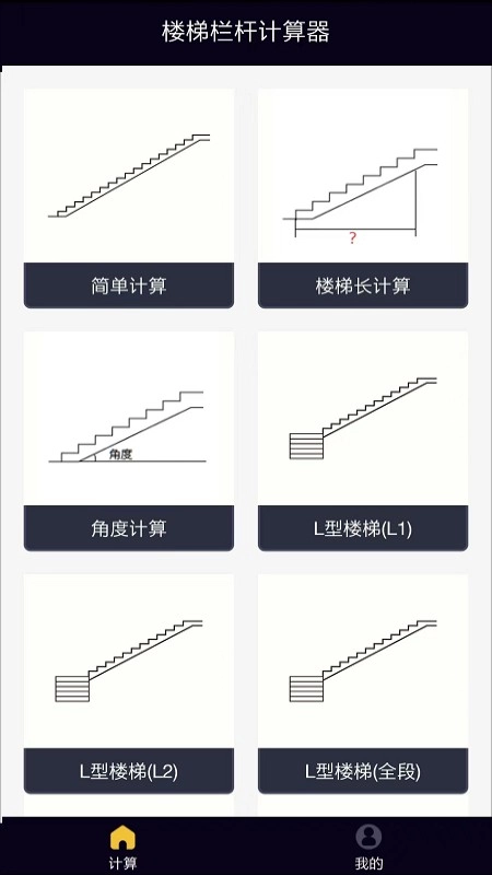 楼梯栏杆计算器软件是一款能为用户提供便捷楼梯计算服务的应用。用户打开应用后,只需填写必要的数字,就能按需进行二折楼梯计算、斜栏杆计算等操作。这款应用具备多种功能,像角度计算、盘梯计算、L型楼梯计算等,用户只需按照图示操作并输入数值,就能轻松完成计算。不管是选择三折楼梯计算还是直栏杆计算,操作都很简单,计算也十分精准,能够满足用户的需求。