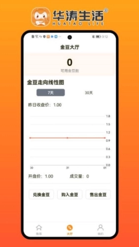 金豆大厅:用户可在金豆大厅内查看金豆开盘与收盘的趋势变化信息。