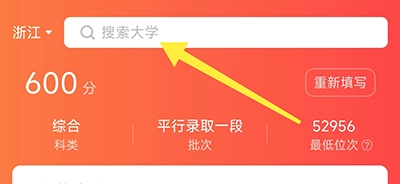 首先打开高考志愿指南,进入主页面后,点击顶部的“搜索大学”选项。