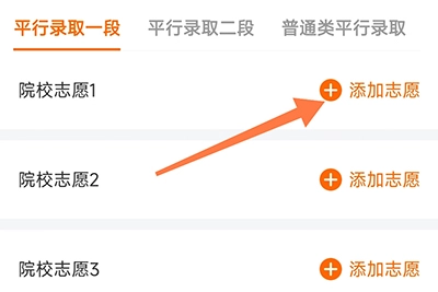 通过底部菜单栏进入高考志愿指南的志愿表页面,然后点击添加志愿按钮。