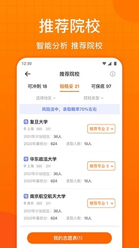 【权威测评】系统会依据考生的个人情况与报考志愿,自动筛选并推荐适配的报考院校,同时出具高校录取可行性的预估报告及专业指导。