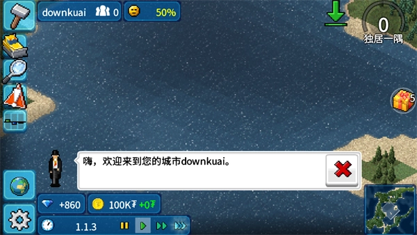(4)右上角:城市规模(开局为「独居一隅」)、满意度