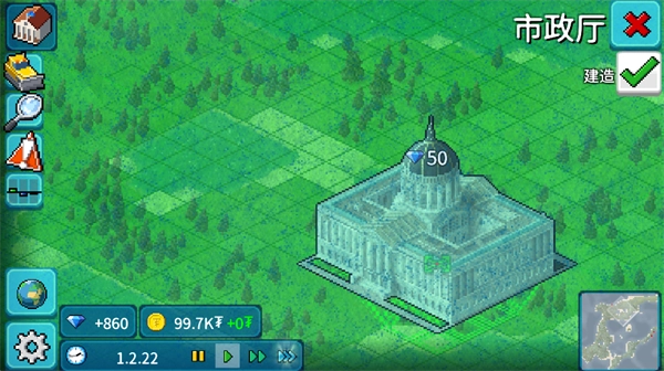 (1)市政厅解锁后,按「住宅→道路→水电→服务」的顺序建设,避免居民流失: