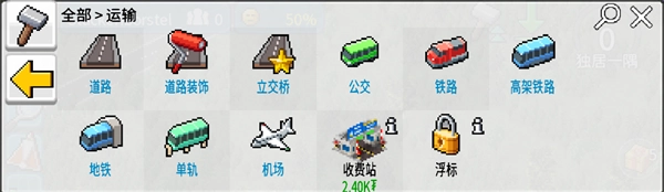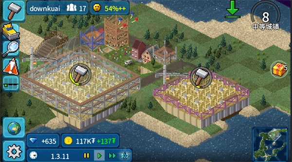 (2)左侧工具栏:包含建造、运输、地图、设置等核心功能