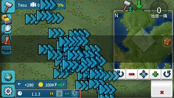 (3)底部状态栏:显示当前资金(100K?)、钻石、游戏时间、速度控制