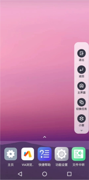 点击右侧隐藏的控制菜单,就能看到返回、退出、小窗、关机等基础操作按钮,这里是控制虚拟机系统进出的最核心区域。