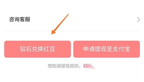 进入钻石页面,点击钻石兑换红豆;