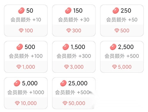 然后就可以依据自己的钻石数量,挑选对应的红豆进行兑换了。