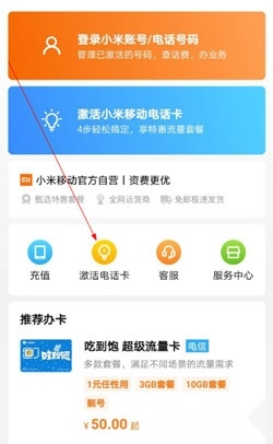 进入软件首界面后,在页面正上方找到已激活绑定的电话卡,点击打开。