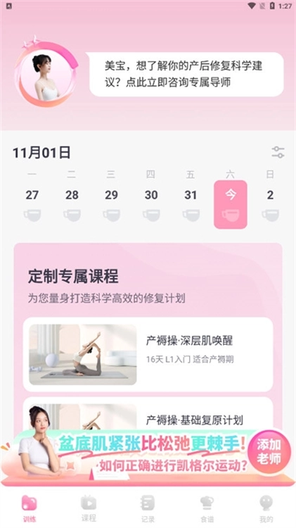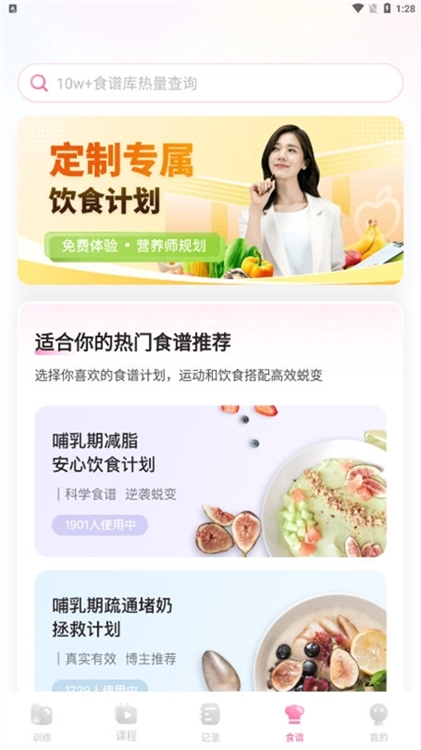 软件会依据用户的身体状况与训练需求,为其量身打造营养均衡的餐谱,助力用户实现科学饮食,从而加快产后恢复进程。该食谱包含早餐、午餐、晚餐以及加餐等多个部分,保障用户能摄取足量营养,以满足身体恢复的需要。