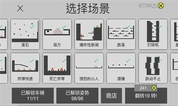 结合车辆创造更高难度的姿势,打得越多,得分越高;