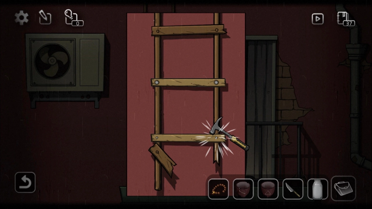 7、用锤子,钉子和木板把墙上的楼梯修好。