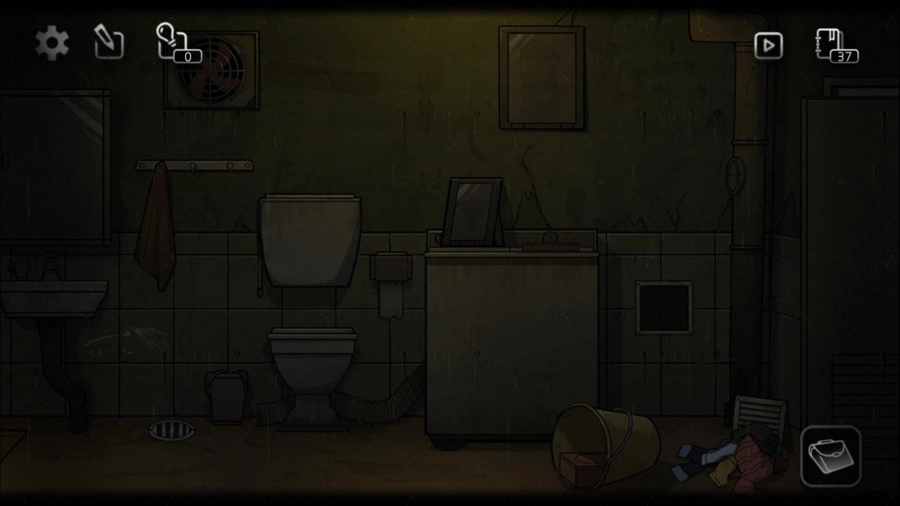 10、进入厕所,点击脏衣篓两次,捡起盒子,查看洞里的团案提示。