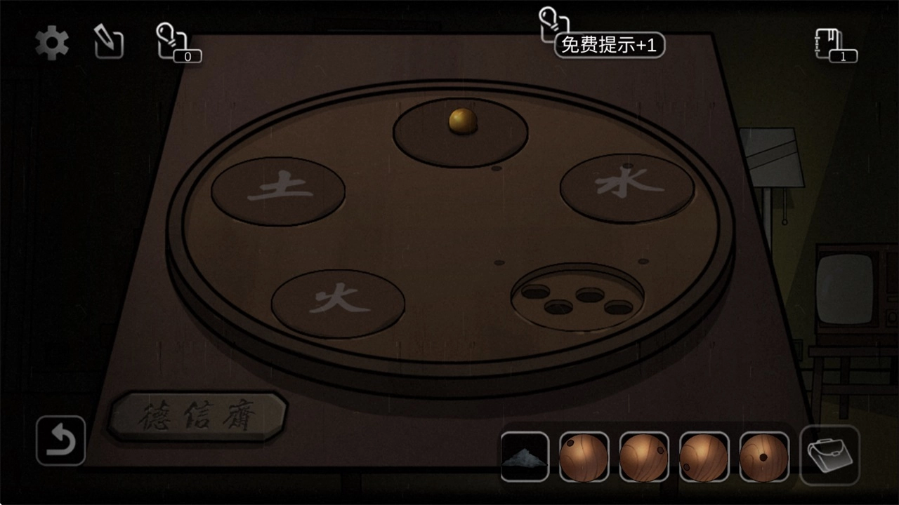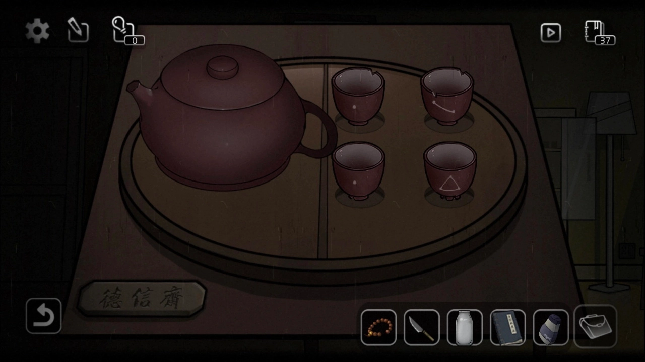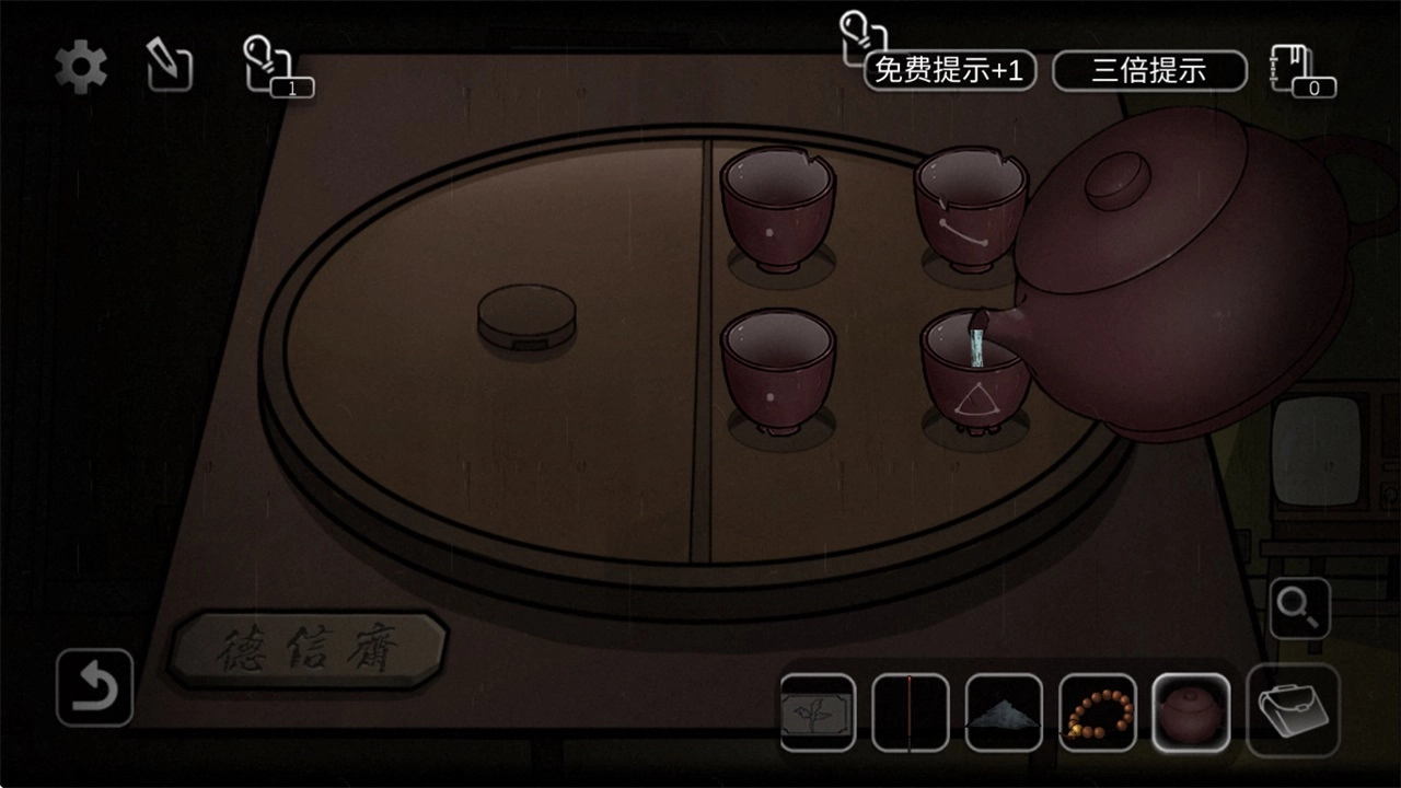 17、把四个茶杯放到茶几左边的茶盘上,提示在墨家五行书上。