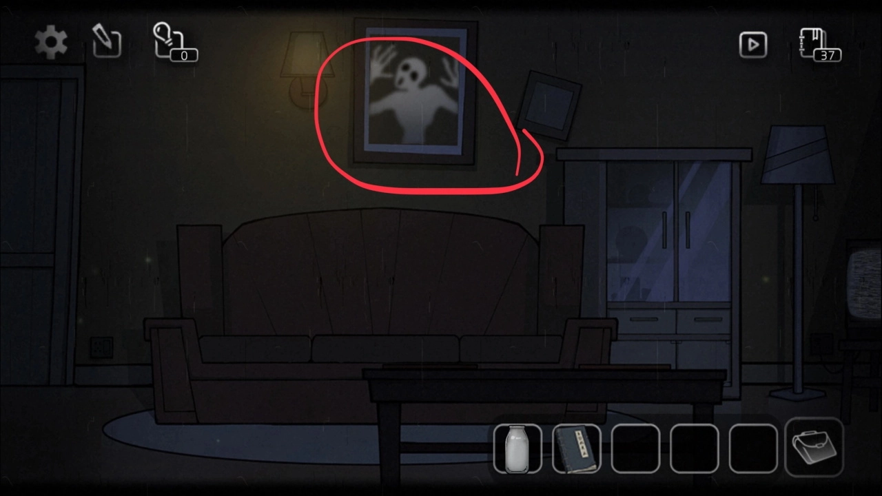 2、砸“密室”相片,获得入户门钥匙,从正面开锁出去——【解锁图集:2-5循环】