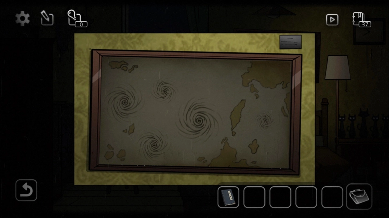 以后画变成了一幅地图,观察上面的漩涡,从小到大的顺序,发现规律是顺逆顺顺逆。回到机关,旋转,进入密室。