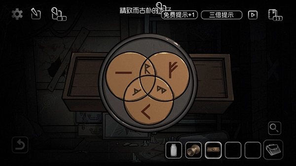 23、拿着钥匙来到阁楼,放进那个箱子,出现六个八卦。