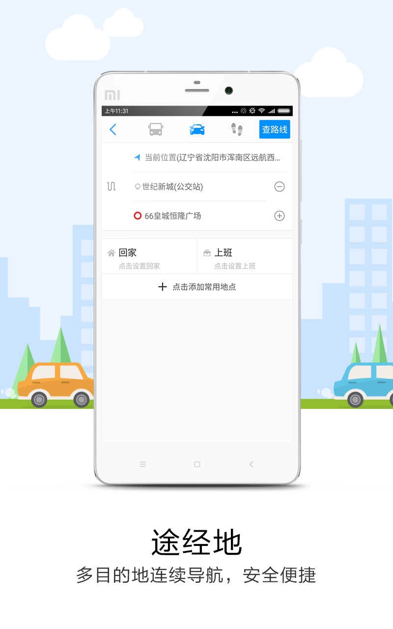 驾车路线:多种路线供选择,走错后自动重新算路!