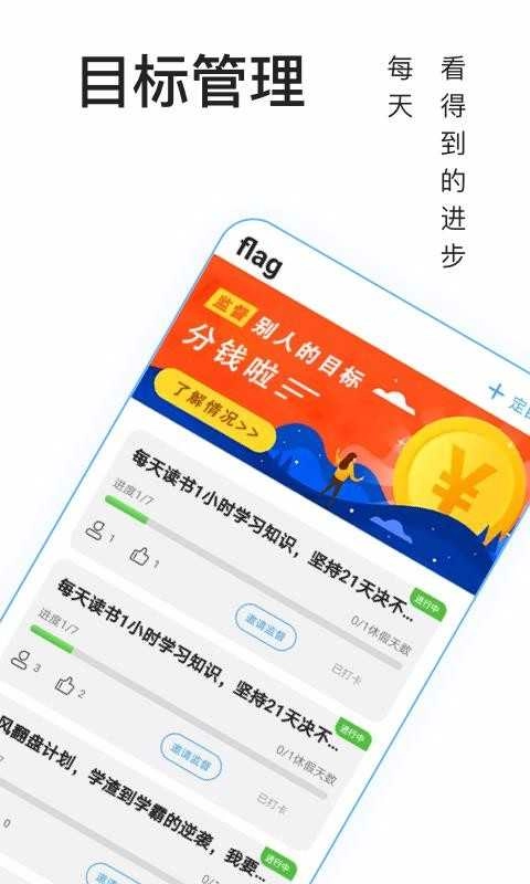 可以围观他人设定的目标,在线上监督你的朋友或网友完成他们的目标,而且还有机会获得小伙伴的部分资金奖励。