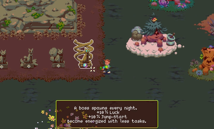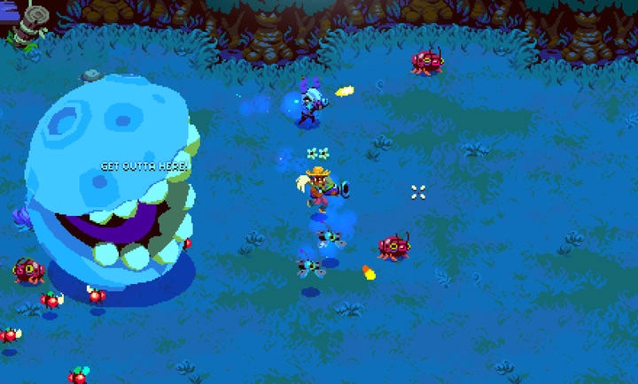 - 升级。探索生物群落的边缘区域,寻找久远以前农场留下的有用遗物。找到生锈的农具、古老的园艺工具,还有大部头的园艺指南,提升耕种能力。把钱花在小镇上,升级枪支和能力。对你的农舍进行永久升级,由始至终,享受游戏加成。